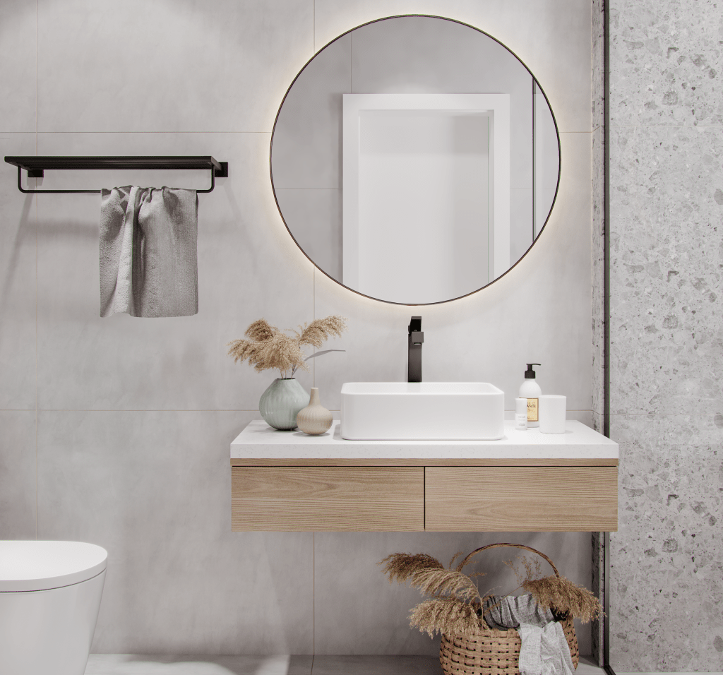 Não esqueça da iluminação do ambiente, crie áreas com iluminação direta e indireta, e deixe o local funcional e relaxante. Instale pontos de luz como arandelas, pendentes e spots de led, em lugares estratégicos, como ao lado do espelho ou na bancada da pia.