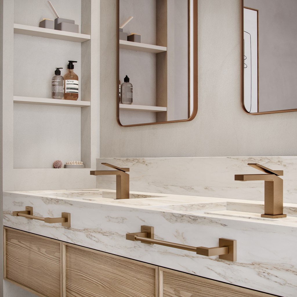 Os metais sanitários são elementos que ajudam na composição da sua decoração, produtos com um design simples e minimalista são perfeitos. Acabamentos como aço escovado e rose escovado são ótimas opções para esses ambientes. Os misturadores da linha Vercci são verdadeiros itens de decoração.