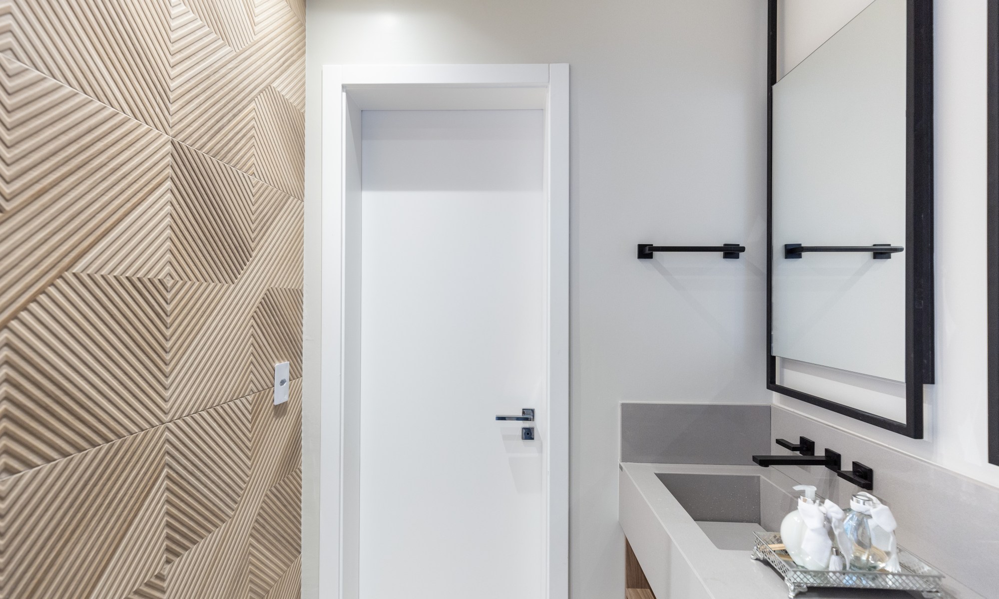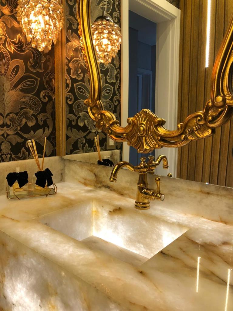 Explore bem as paredes do ambiente, utilizando prateleiras, nichos e acessórios em pontos estratégicos, para deixar a sua marca. Espelhos com molduras imponentes são uma ótima opção para enriquecer ainda mais a decoração. Quadros também podem fazer toda a diferença na composição da temática do lavabo.