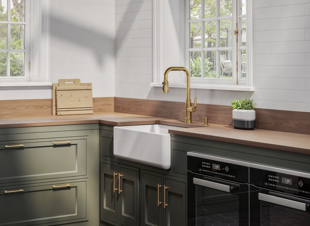 Além da funcionalidade, o design de uma cozinha gourmet deve refletir sofisticação e harmonia. Misturadores e acessórios bem escolhidos não apenas facilitam o dia a dia, mas também criam um ambiente convidativo e elegante. Metais de alto padrão com acabamentos exclusivos podem ser o ponto focal da cozinha, complementando bancadas de mármore, ilhas centrais e armários planejados.