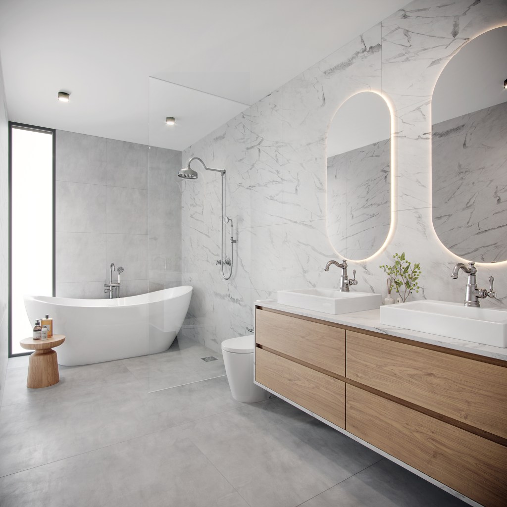 1. Banheiros com estética leve e natural